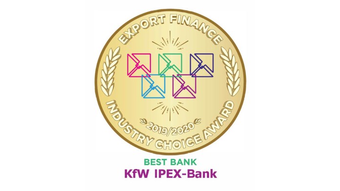 London-based specialist information service Trade & Export Finance (TXF) ranks KfW IPEX-Bank among the top three export finance companies in the world according to the TXF Export Finance Industry Report 2020. This makes KfW IPEX-Bank the only institute on the panel to be placed in the top three export finance banks for the fourth time.
